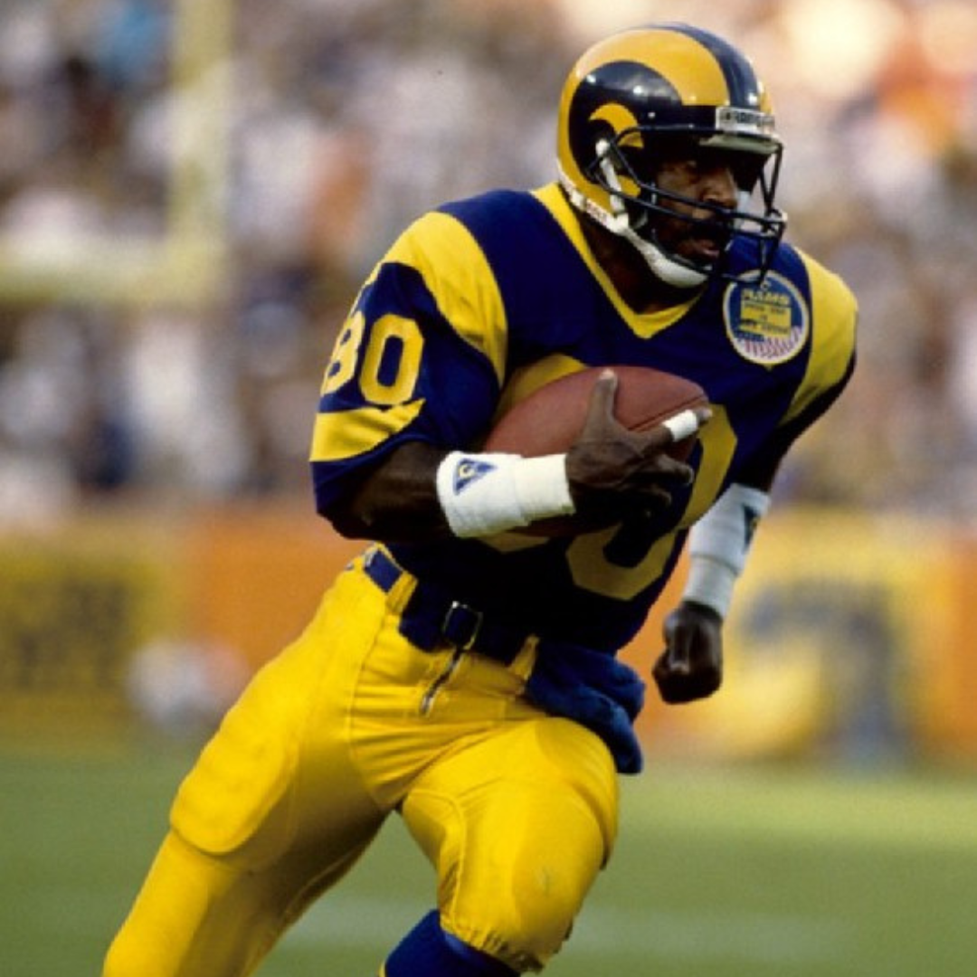 After a record-breaking career as a receiver for Fresno State, Henry Ellard soared to the top of the National Football League, leading the Los Angeles Rams in receiving nine out of the eleven seasons that he played for them. The Rams selected Ellard in the second round (32nd pick overall) in the 1983 draft, launching a career that included three Pro Bowls (1984, 1988 and 1989). By the time he left the team in 1994, Ellard had a firm grip on the Rams record book: first in career receptions (593), first in receiving yards (9,761), most 100-yard receiving yards (26), highest punt return average (11.3), and most total yards offense (11,663).